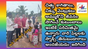 *చిత్తు కాగితాలు,,చిక్కు వెంట్రుకలు అమ్ముకొని జీవనం సాగించే కుటుంబాల ఇంటికే పరిమితమ ఉన్నారు వారి పిల్లలకు స్నాక్స్ తినుబండారాలు అందజేయడం జరిగింది*
