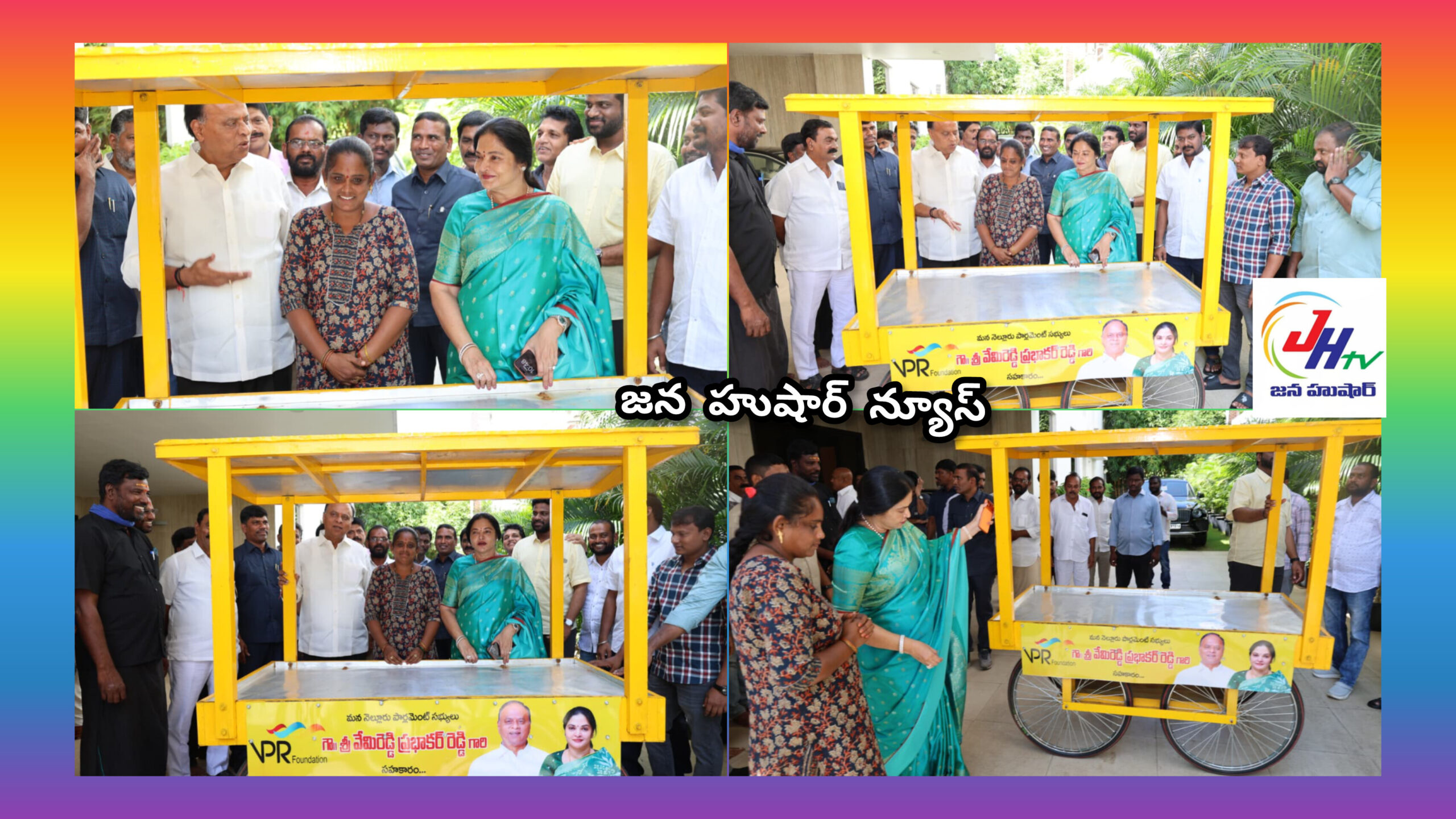 నెల్లూరు నగరం మాగుంట లేఔట్ లోని విపిఆర్ నివాసంలో ఎంపి వేమిరెడ్డి ప్రభాకర్ రెడ్డి, ఎమ్మెల్యే వేమిరెడ్డి ప్రశాంతి రెడ్డి లు బుచ్చిరెడ్డి పాళెం పట్టణ పరిధిలోని కాశీ పాళెం ప్రాంతానికి చెందిన కూరగాయల వ్యాపారం చేసుకునే రాణి అనే పేద మహిళకు తోపుడు బండి యిచ్చి ఆదుకున్నారు.