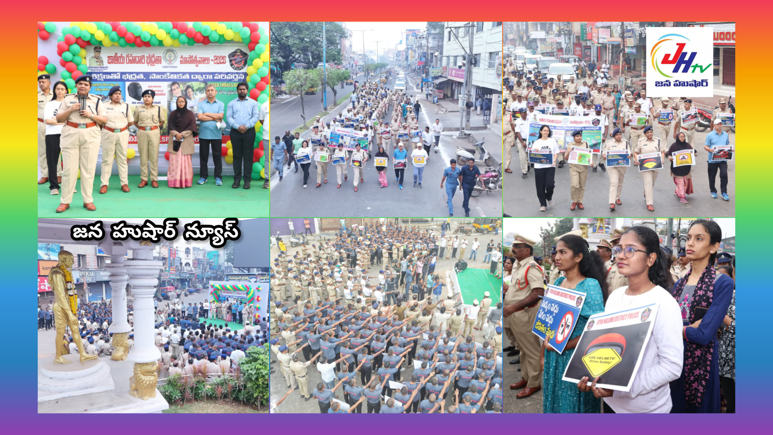 జాతీయ రహదారి భద్రత మాసోత్సవాలు–2026 లో భాగంగా “శిక్షణతో భద్రత – సాంకేతికత ద్వారా పరివర్తన” స్లోగాన్తో రోడ్డు సేఫ్టీపై VRC సెంటర్ నుండి గాంధీ బొమ్మ వరకు వాకథాన్ నిర్వహించిన ప్రజలకు రోడ్డు భద్రత ప్రాముఖ్యతను వివరించిన జిల్లా గారు