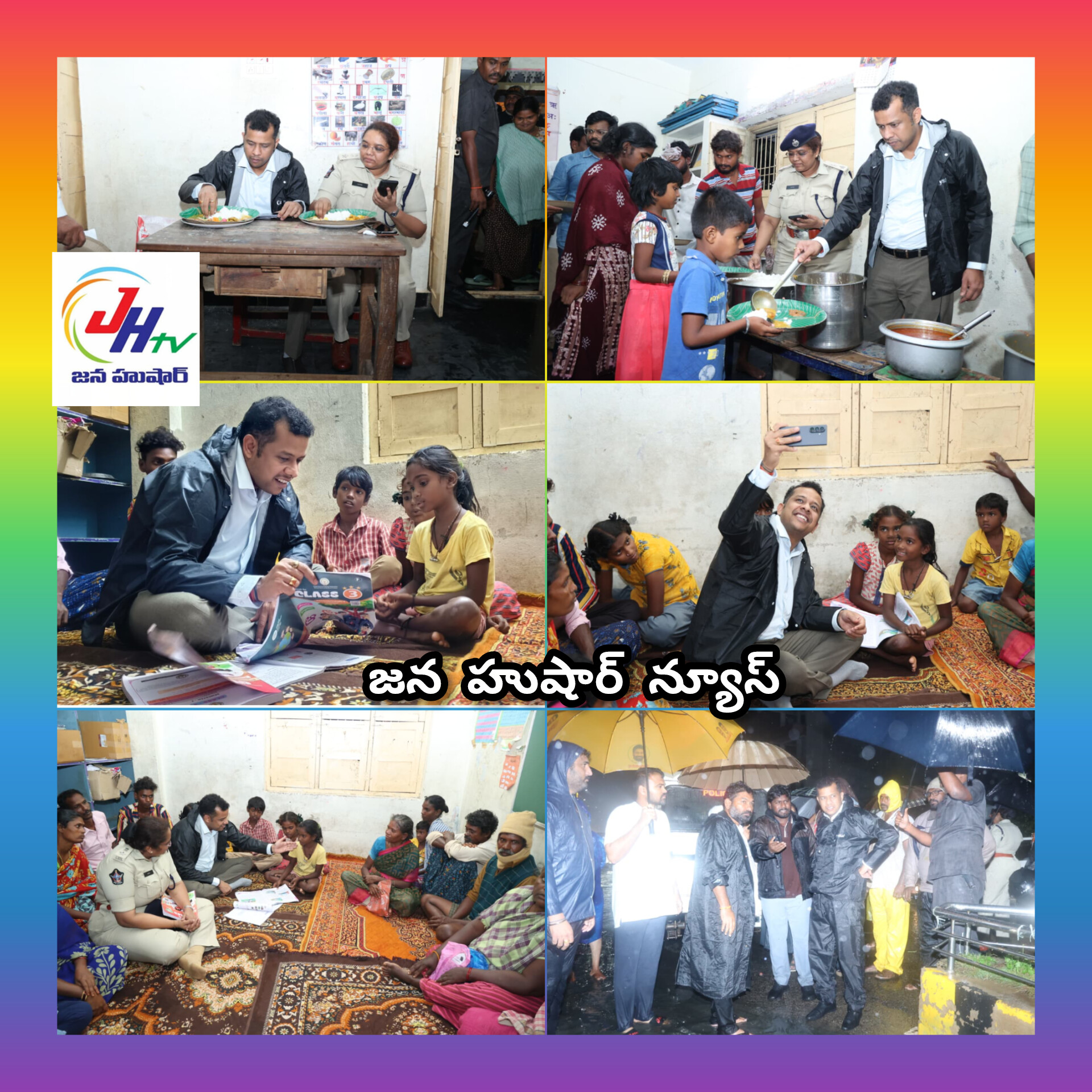 ఈ సందర్భంగా జిల్లా కలెక్టర్ మాట్లాడుతూ వర్షపు నీరు ఎక్కడా నిలవకుండా కాలువలు ద్వారా సజావుగా వెళ్లేందుకు మున్సిపల్ అధికారులు నిరంతరం చర్యలు తీసుకున్నారన్నారు. గతంలో మాదిరి కాకుండా రోడ్ల పై నీరు నిల్వ లేకుండా అన్ని ముందస్తు చర్యలు తీసుకోవడంతో ఎక్కడా ఎటువంటి ఇబ్బందులు తలెత్తలేదన్నారు. పునరావస కేంద్రాల్లో మంచి రుచికరమైన వేడి వేడి భోజనాన్ని అందించాలని, నిరంతర మంచినీటి సౌకర్యం కల్పించాలన్నారు. చిన్నారులకు పాలు అందివ్వాలని సూచించారు. పునరావాసవ కేంద్రాల్లో పారిశుద్ధ్య విషయంలో అత్యంత జాగ్రత్తలు తీసుకోవాలన్నారు. పునరావాస కేంద్రంలో అందించే భోజనాన్ని స్వయంగా జిల్లా కలెక్టర్, జిల్లా ఎస్పీ వారికి వడ్డీంచడంతో పాటు వారిరువురు అక్కడే భోంచేశారు.