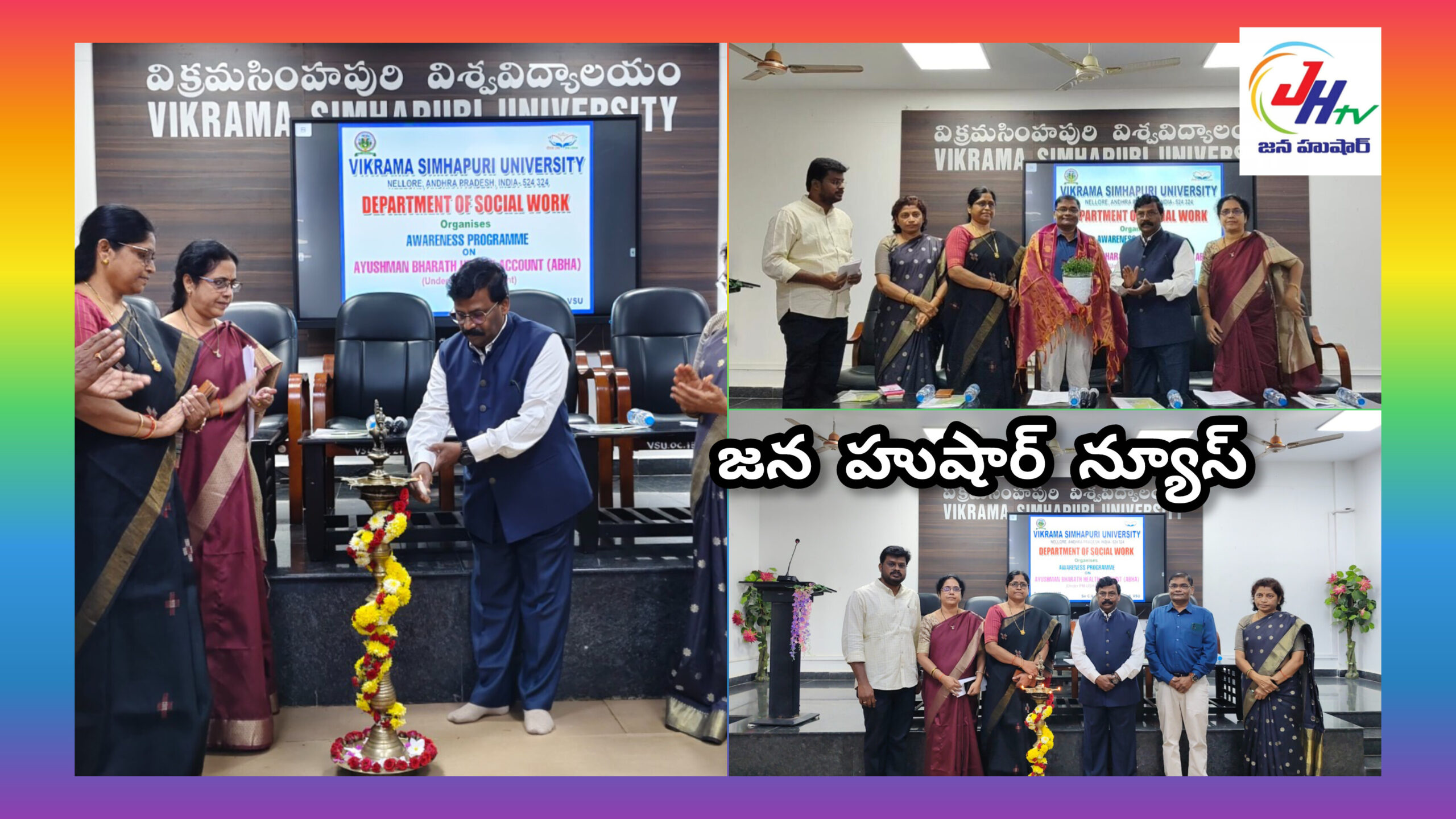 నెల్లూరు: ప్రభుత్వం అందిస్తున్న డిజిటల్ హెల్త్ సేవలను విద్యార్థులు సద్వినియోగం చేసుకోవాలని విక్రమ సింహపురి విశ్వవిద్యాలయం (VSU) వైస్–ఛాన్సలర్ ఆచార్య అల్లం శ్రీనివాసరావు పిలుపునిచ్చారు. నెల్లూరులోని విక్రమ సింహపురి విశ్వవిద్యాలయం సోషల్ వర్క్ విభాగం ఆధ్వర్యంలో, ప్రధాన్ మంత్రి ఉచ్చతర్ శిఖ్ష అభియాన్ (PM-USHA) సహకారంతో “ఆయుష్మాన్ భారత్ హెల్త్ అకౌంట్ (ABHA)”పై ప్రత్యేక అవగాహన సదస్సును నిర్వహించారు.