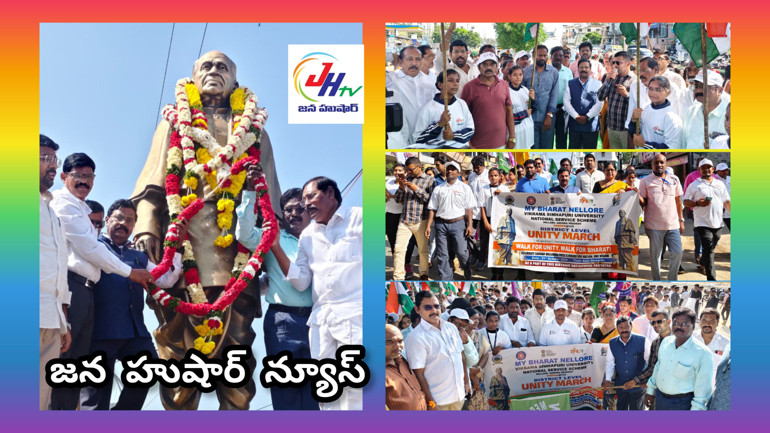 నెల్లూరు: భారతదేశపు ఉక్కు మనిషి, దేశ సమైక్యతా శిల్పి సర్దార్ వల్లభభాయ్ పటేల్ జయంతి సందర్భంగా శుక్రవారం నెల్లూరులో ఘనంగా కార్యక్రమం జరిగింది. విక్రమ సింహపురి యూనివర్సిటీ జాతీయ సేవా పథకం (ఎన్‌ఎస్‌ఎస్) మరియు మై భారత్ నెల్లూరు ఆధ్వర్యంలో పిఆర్‌సి మైదానం నుండి కరెంట్ ఆఫీస్ సెంటర్ వరకు భారీ ర్యాలీ నిర్వహించారు.