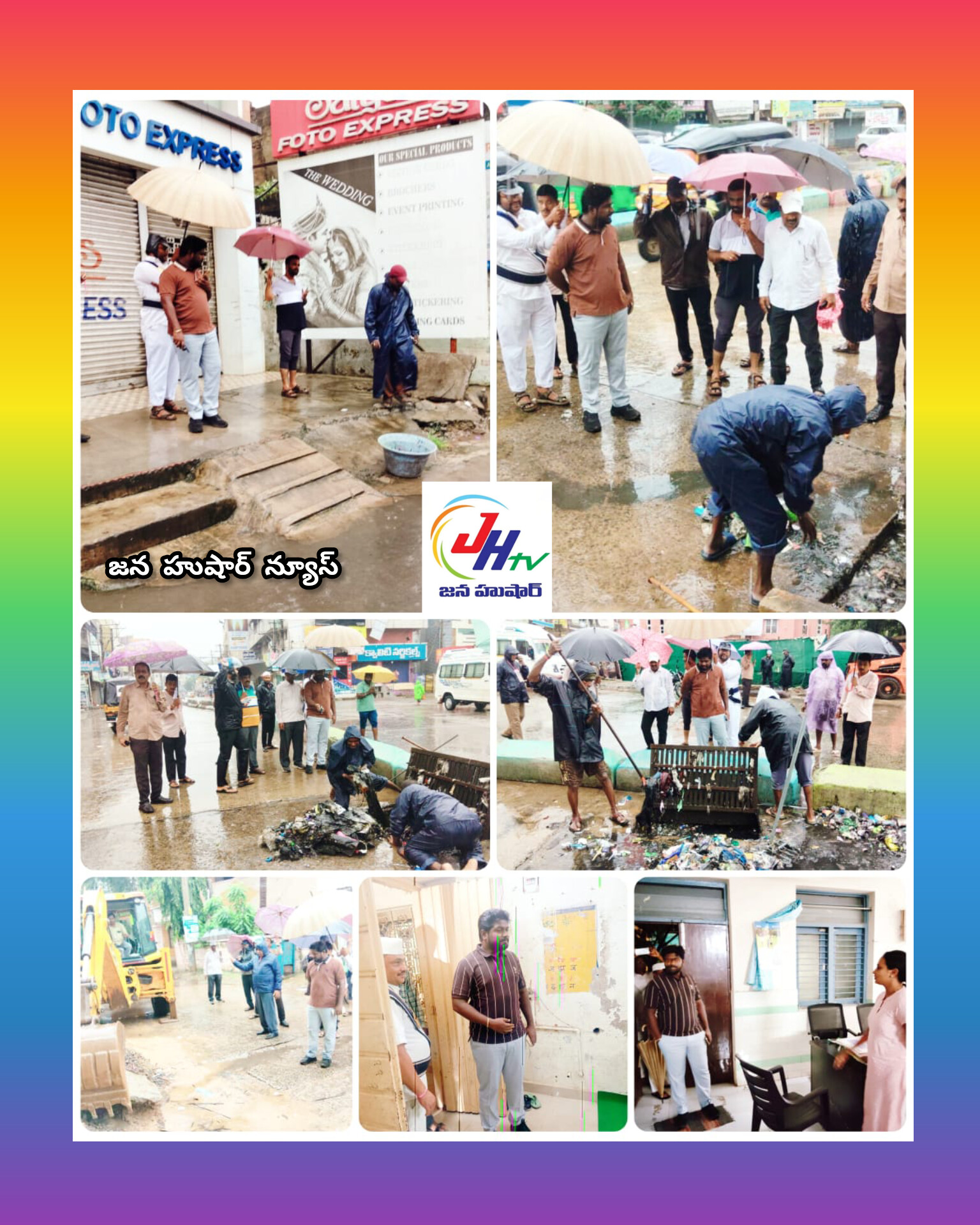 ముంథా తుఫాను నేపథ్యంలో కురుస్తున్న భారీ వర్షాలకు డ్రైన్ కాలువల వరదనీటి ప్రవాహాన్ని కమిషనర్ మంగళవారం నగరవ్యాప్తంగా పర్యవేక్షిస్తున్నారు. అందులో భాగంగా స్థానిక గాంధీ బొమ్మ కూడలి ట్రంకు రోడ్డు తదితర ప్రాంతాలలో రైలు కాలువలను పరిశీలించి బ్లాక్ అయిన ప్రాంతాలలో యుద్ధ ప్రాతిపదికన క్లియరెన్స్ చర్యలు చేపట్టమని సిబ్బందిని ఆదేశించారు.