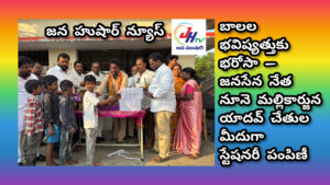 *బాలల భవిష్యత్తుకు భరోసా – జనసేన నేత నూనె మల్లికార్జున యాదవ్ చేతుల మీదుగా స్టేషనరీ పంపిణీ*