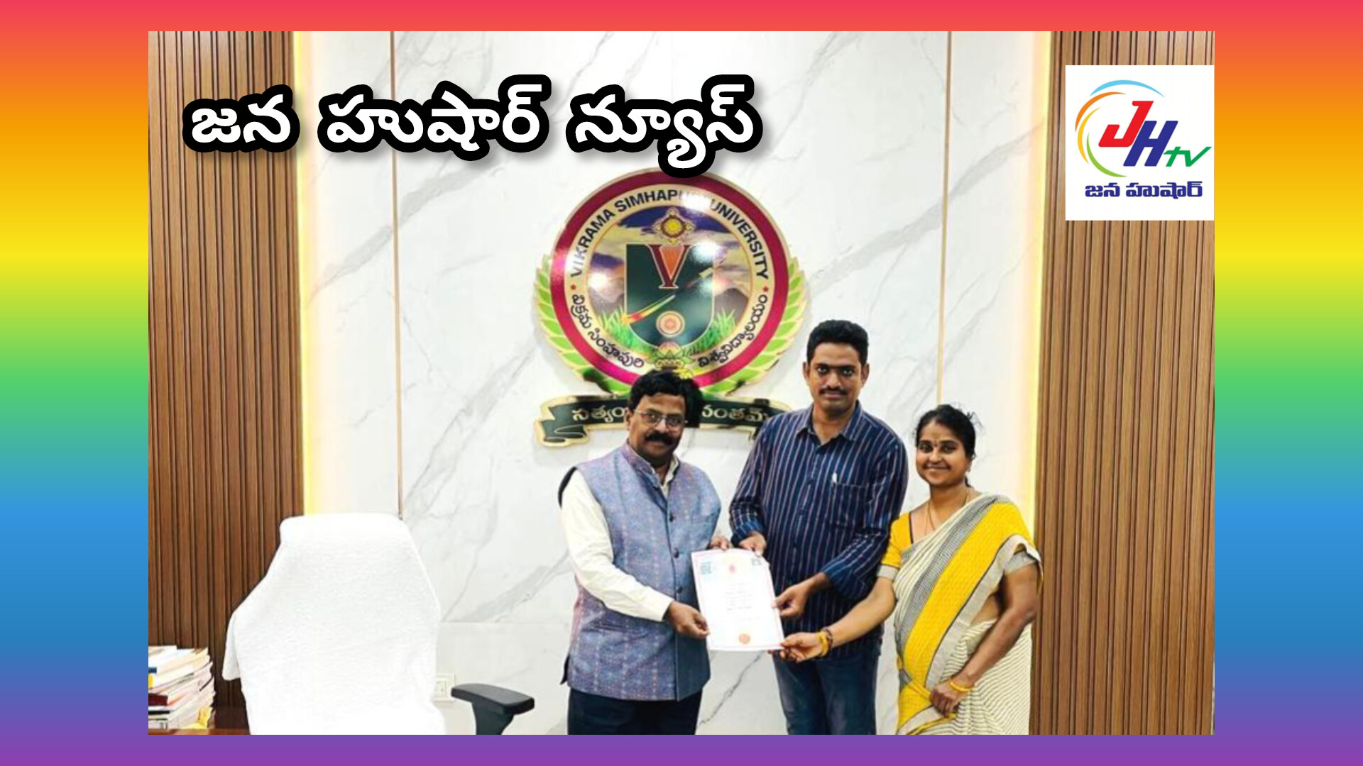 విక్రమ సింహాపురి విశ్వవిద్యాలయం (వి.ఎస్.యూ) కెమిస్ట్రీ విభాగానికి చెందిన పరిశోధక విద్యార్థి ఏ. వెంకటేశ్వర్లుకు డాక్టరేట్ లభించింది. కెమిస్ట్రీ విభాగాధిపతి డాక్టర్ త్రివేణి పర్యవేక్షణలో “A NOVEL ONE-POT SYNTHESIS OF BENZOFUSED FIVE AND SIX MEMBERED HETEROCYCLIC SYSTEMS” అనే అంశంపై వెంకటేశ్వర్లు సమర్పించిన పరిశోధన గ్రంథానికి (థీసిస్) యూనివర్సిటీ డాక్టరేట్ ప్రదానం చేసింది.
